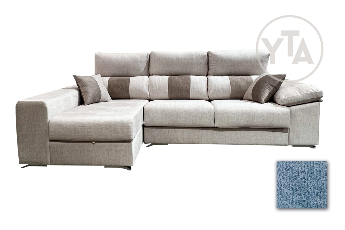 SOFÁ-CHAISSELONG DE 280 CMS DE ANCHO. MOD. PERSEO. IZQUIERDA. TAPIZADO EN TELA AURELLA 13 CELESTE